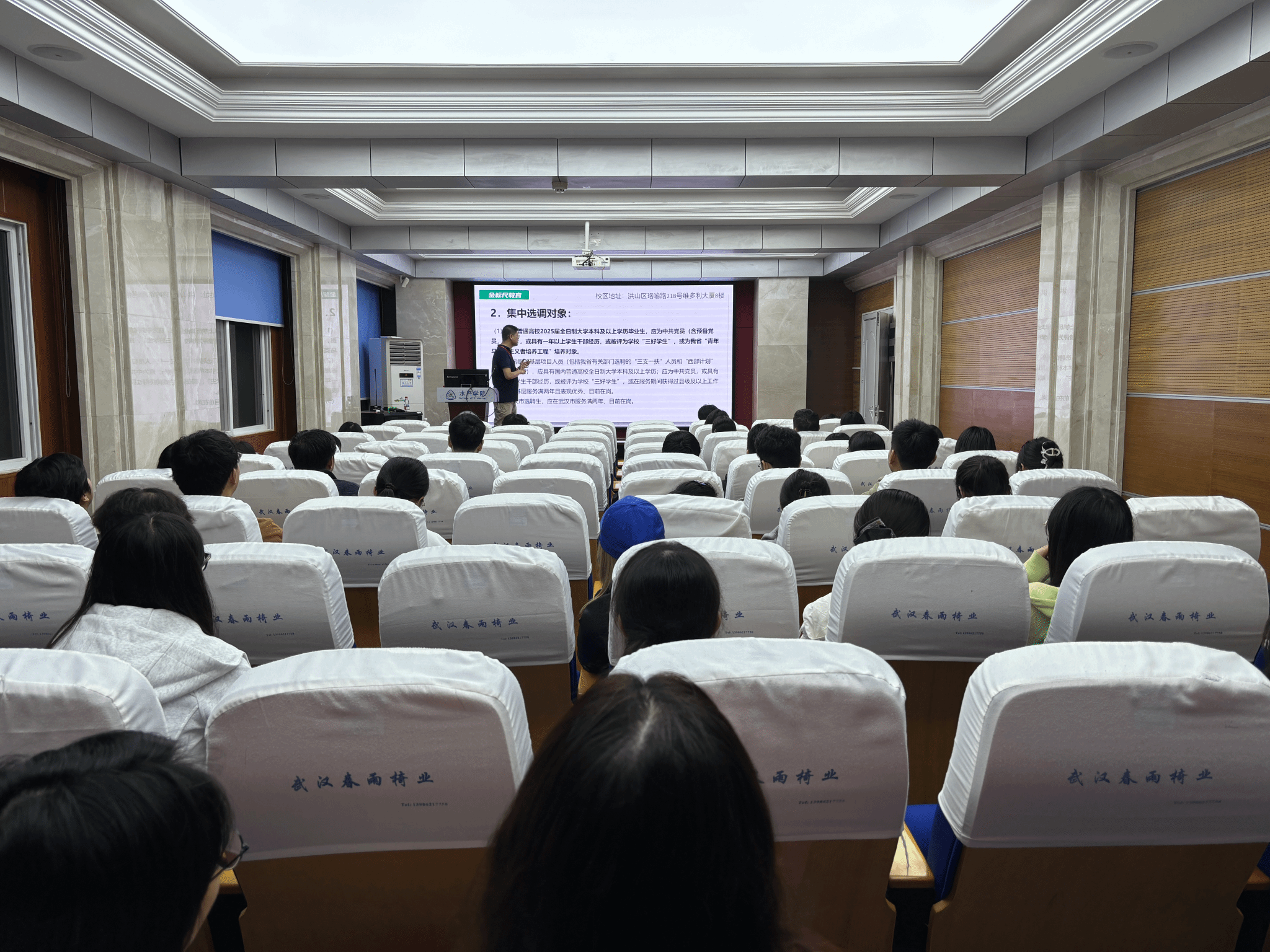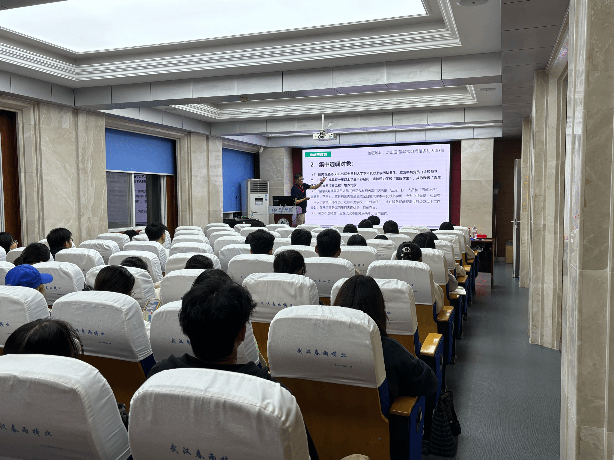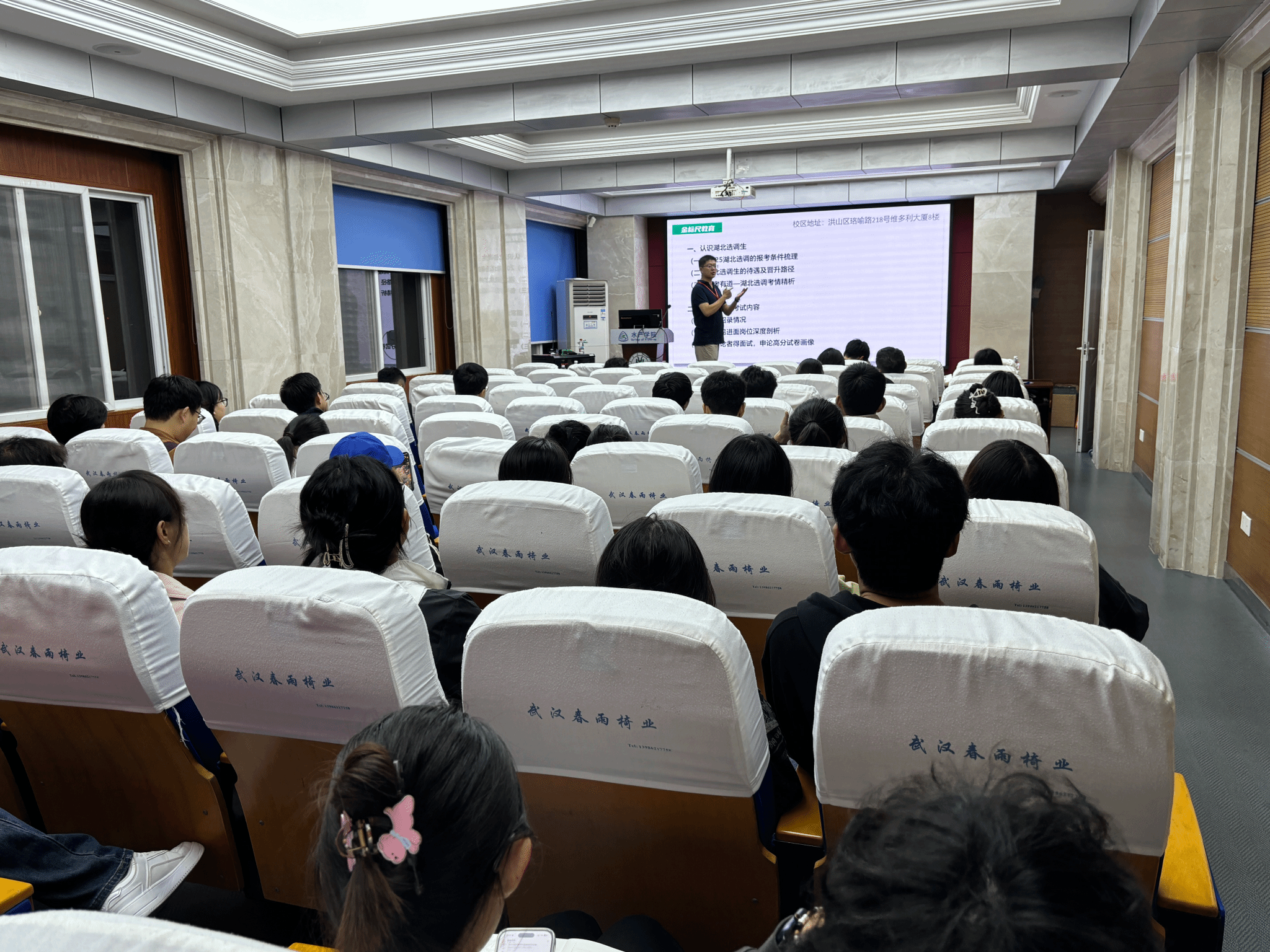 精准服务学生就业需求,提升学子公职考试竞争力,2025年10月15日晚,a动漫 特邀金标尺公考培训机构资深讲师张轩,为有意投身公共部门的同学们带来一场内容丰富、讲解生动的公务员考试培训讲座。本次讲座聚焦选调生政策与国家公务员考试两大核心板块,旨在为学子们的公职之路指引方向、夯实基础。