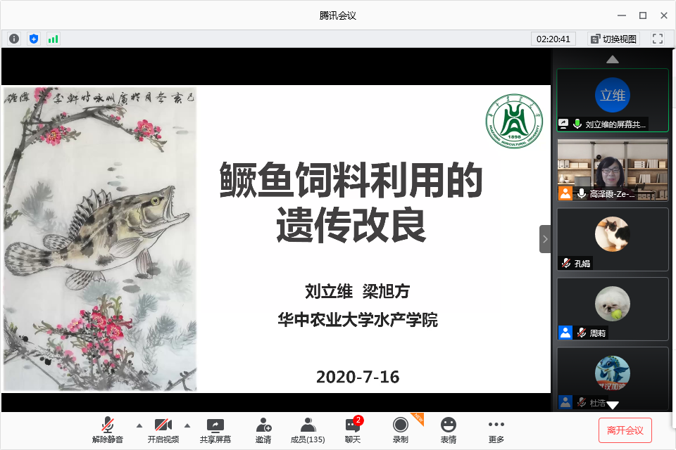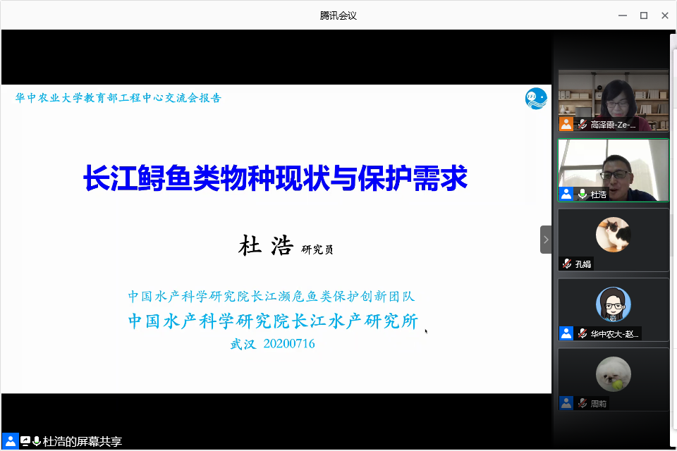 在线上腾讯会议组织召开依托于“长江经济带大宗水生生物产业绿色发展”教育部工程研究中心的“动物种质资源保护与挖掘利用”平台学术研讨会,报告由a动漫