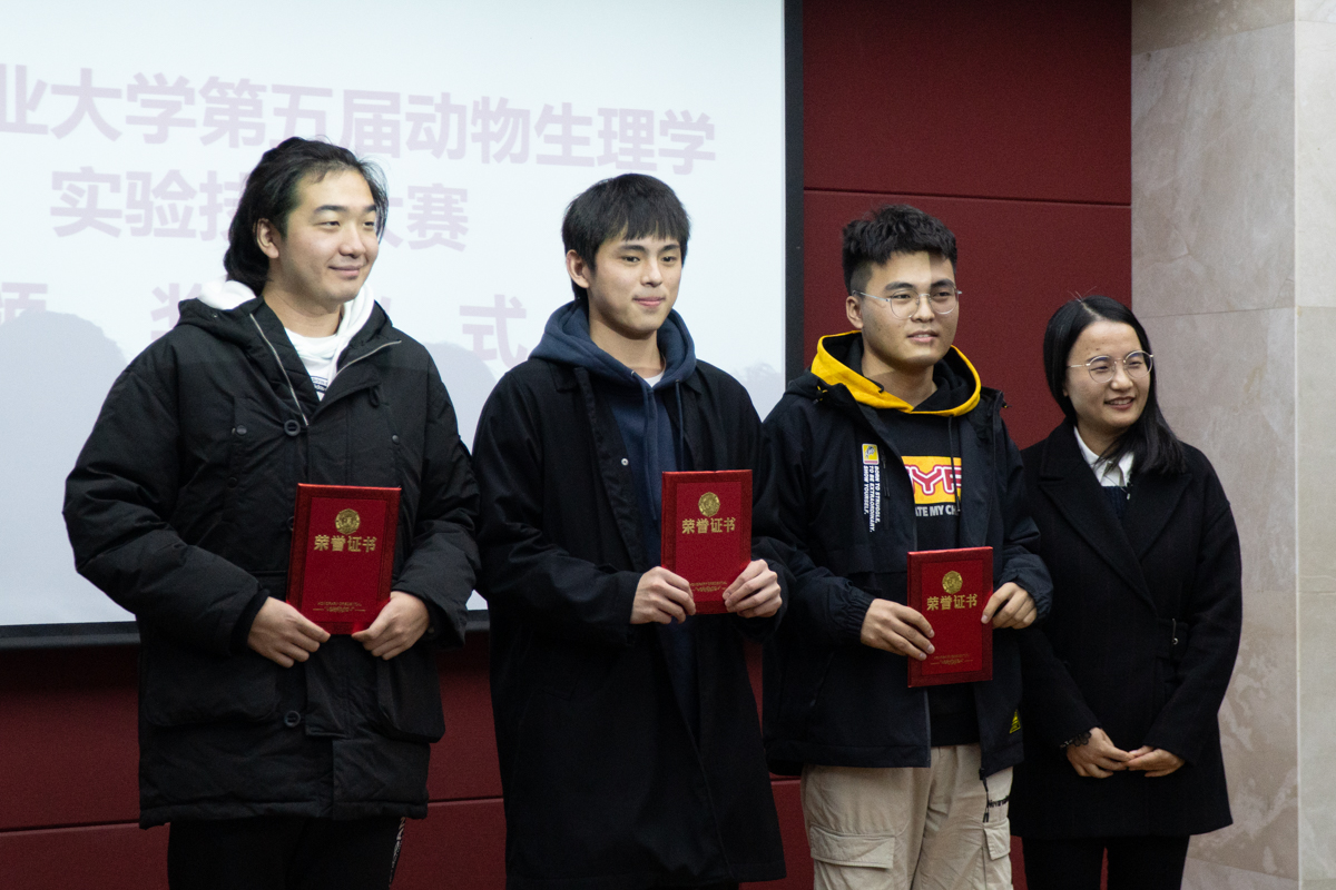 在颁奖仪式上,王前文、徐渊涵、谭桂红在专业组个人单项赛中获得一等奖,王松、杨成伟、武广昊在专业团体赛中夺取桂冠。张曦老师对本次比赛进行了点评,她提到,此次比赛让更多的非专业的同学了解了动物生理学、加深了对生命的理解,同时也可以让不同专业的同学们互相切磋、共同进步。