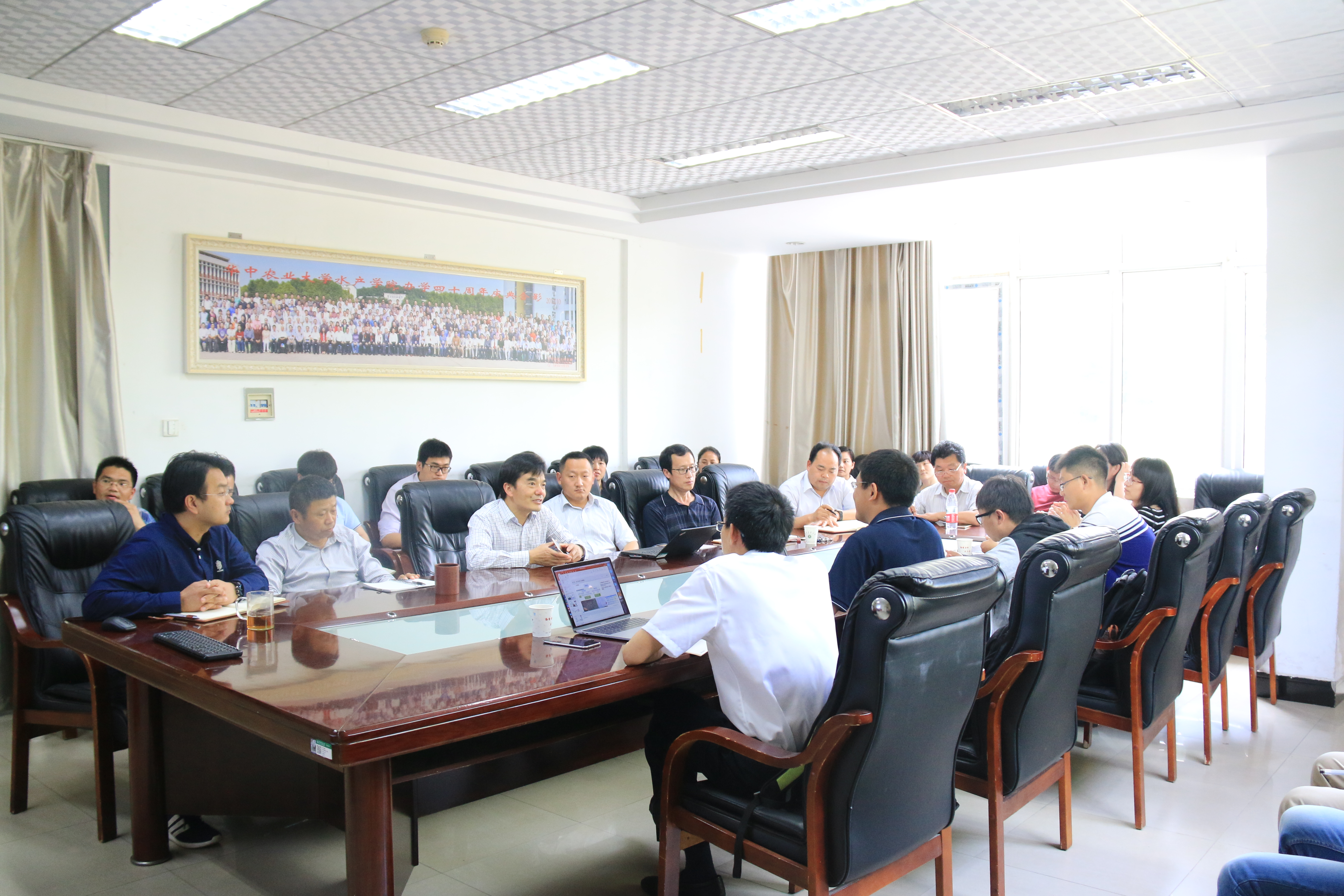 最后,大家就汇报内容进行了细致的探讨。双方一致认为水产养殖集约化,规模化是未来产业发展的必然趋势。其中,养殖水体处理净化,精准投喂,以及养殖动物疾病防治和免疫都将是重点关注的内容。通过加强校企科研交流和密切合作,可以同时发挥院校的科研实力和企业在实践应用上的优势,更加快速地推进科研成果的推广应用,进一步推动水产行业的发展。