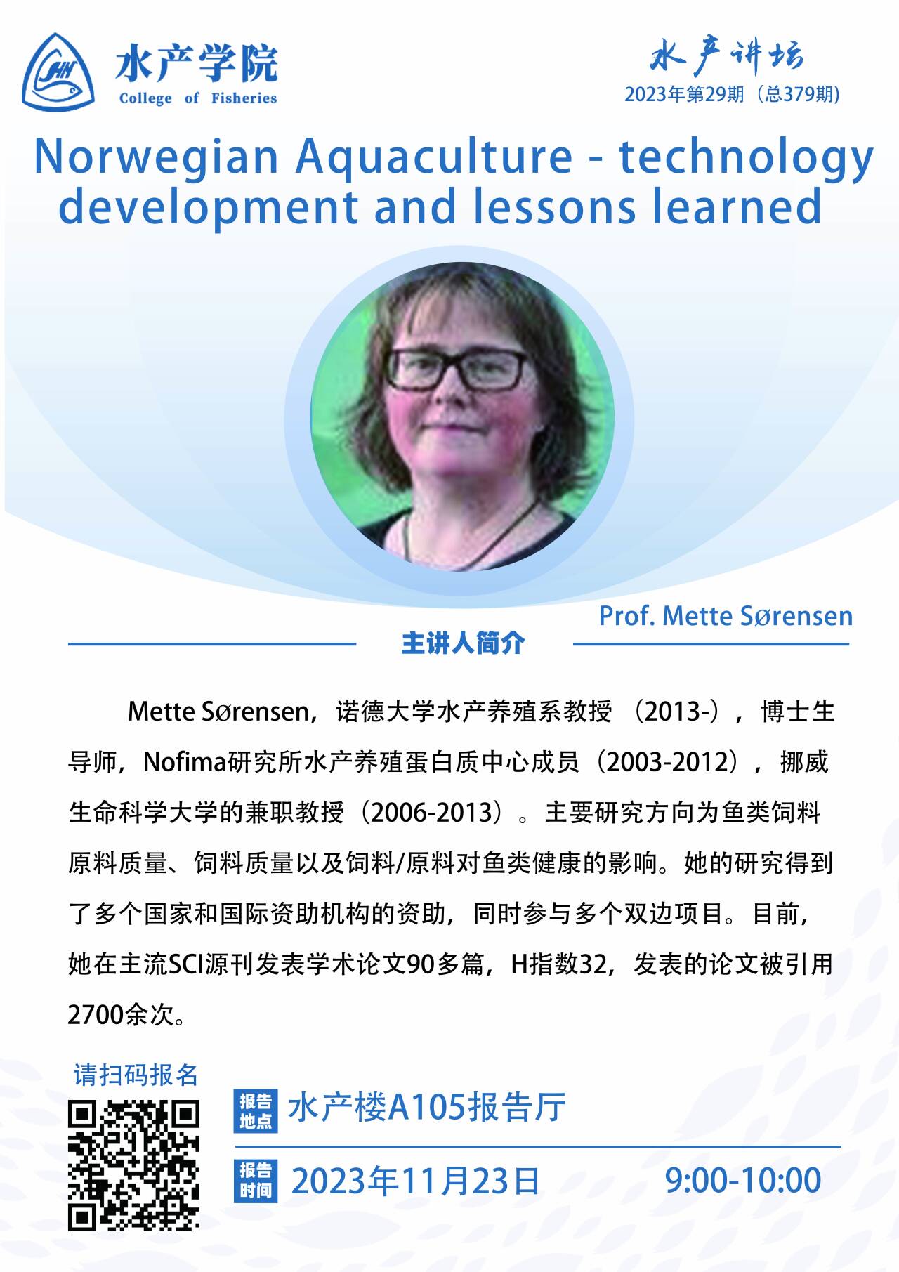 水产讲坛-Prof. Mette Sorensen
