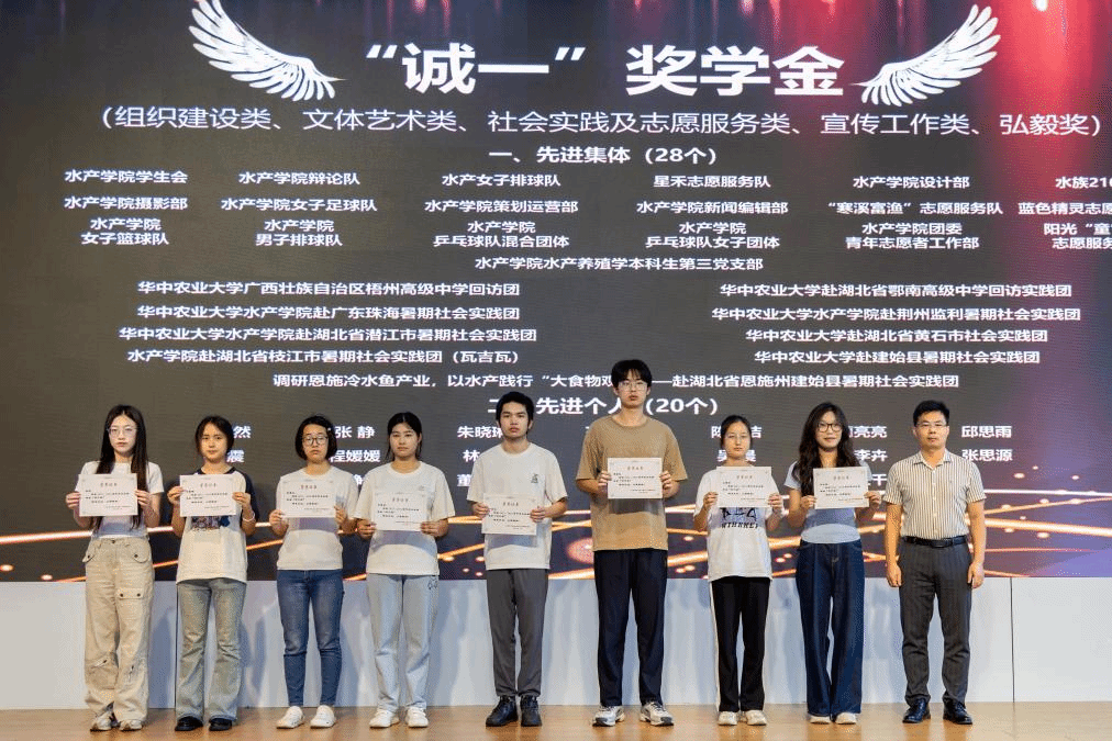 2025年企业奖学金表彰文件,水产养殖学2021级3班等102个集体、凌碧君等238名学生获得本年度企业奖学金。颁奖仪式上,企业代表欣然为获奖集体和学生代表颁奖。“海大”奖学金、“诚一”奖学金、“至正天辰”奖学金、“通威”奖学金、“力源”奖学金、“联鲲”奖学金、“利洋”奖学金、“芳华”奖学金的获奖学生代表依次上台领奖,现场掌声雷动,气氛热烈。