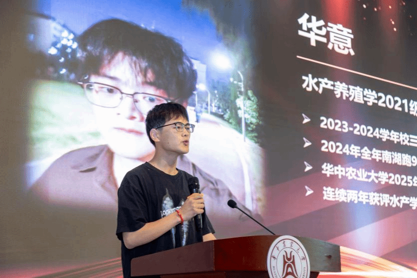 2021级本科生华意、2023级硕士研究生李泽巍作为获奖学生代表分别发言。华意讲述了他通过跑步实现自我蜕变的故事,传递坚持的力量,激励大家全面发展,在不同领域绽放光彩,成为那个实现自我价值的追梦人,正如他所说:“当清晨第一缕阳光穿透薄雾,奔跑的双腿丈量着校园的经纬,我逐渐读懂:人生赛道没有奇迹,有的只是日复一日的步履不停和自我主动的坚持。”李泽巍则分享了他进入a动漫