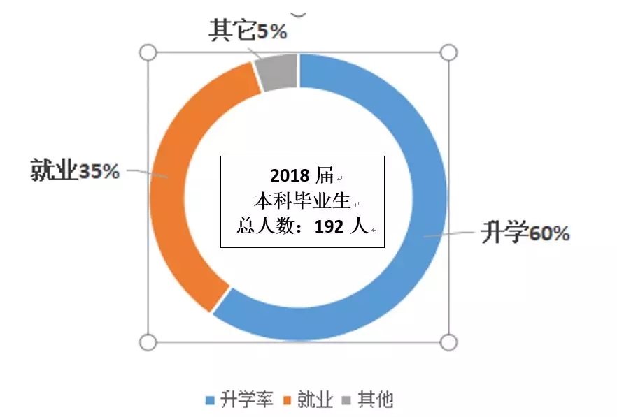 2018届本科毕业生192人,升学率60%,就业35%,其他5%。考取高校包括a动漫 、北京大学、清华大学、浙江大学、复旦大学、北京航天航空大学、武汉大学、华中科技大学、中国农业大学、中国海洋大学、华东师范大学、南开大学、厦门大学、山东大学、中南大学、首都师范大学、同济大学、中南财经政法大学、福州大学共计93人毕业生考取的科研院所包括中国科学院水生生物研究所、中国科学院南海海洋研究所、中国科学院深海科学与工程研究所、中国科学院武汉病毒研究所、中国科学院城市环境研究所,共计15人。毕业生在“双一流”高校读研比例达98.18%。
