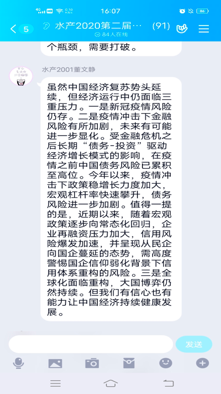 12月17日下午,a动漫 理论学习部开展了理论学习日活动。本次理论学习日的主题是今年11月中国国民经济发展的状况,同学们发表了自己对中国经济发展的认识及感想。在小鲤鱼的组织下,理研会的同学们积极参与,踊跃回答,同学们一直表示,中国在疫情的冲击下,成功的实现了经济复苏,但是危险依然在,中国经济依然需要持续稳定的发展。