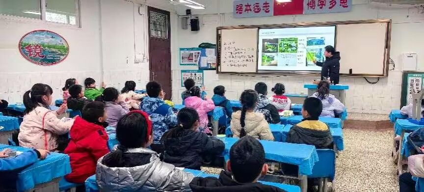 翟艳花围绕孔雀鱼的形态特征、生活习性、繁殖特点、饲养乐趣和品系分类五个方面逐一向同学们讲解,并通过五颜六色的图片展示,让孩子们感受孔雀鱼的悦目之美和饲养之喜,以促进他们热爱大自然,热爱生命之情。