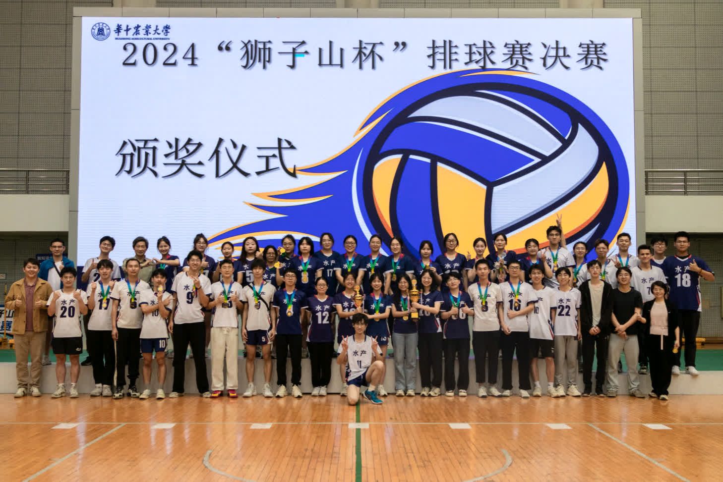 蒲河嘉于2024年狮子山杯决赛水产排球队合影留念