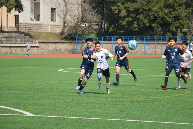 足球队与工学院足球队在一运体育场展开了一场激烈的足球对决。比赛伊始,我方队员便展现出强烈的求胜欲望,积极拼抢,与工学院队员展开了激烈的身体对抗,力图将控球权牢牢掌握在自己手中。