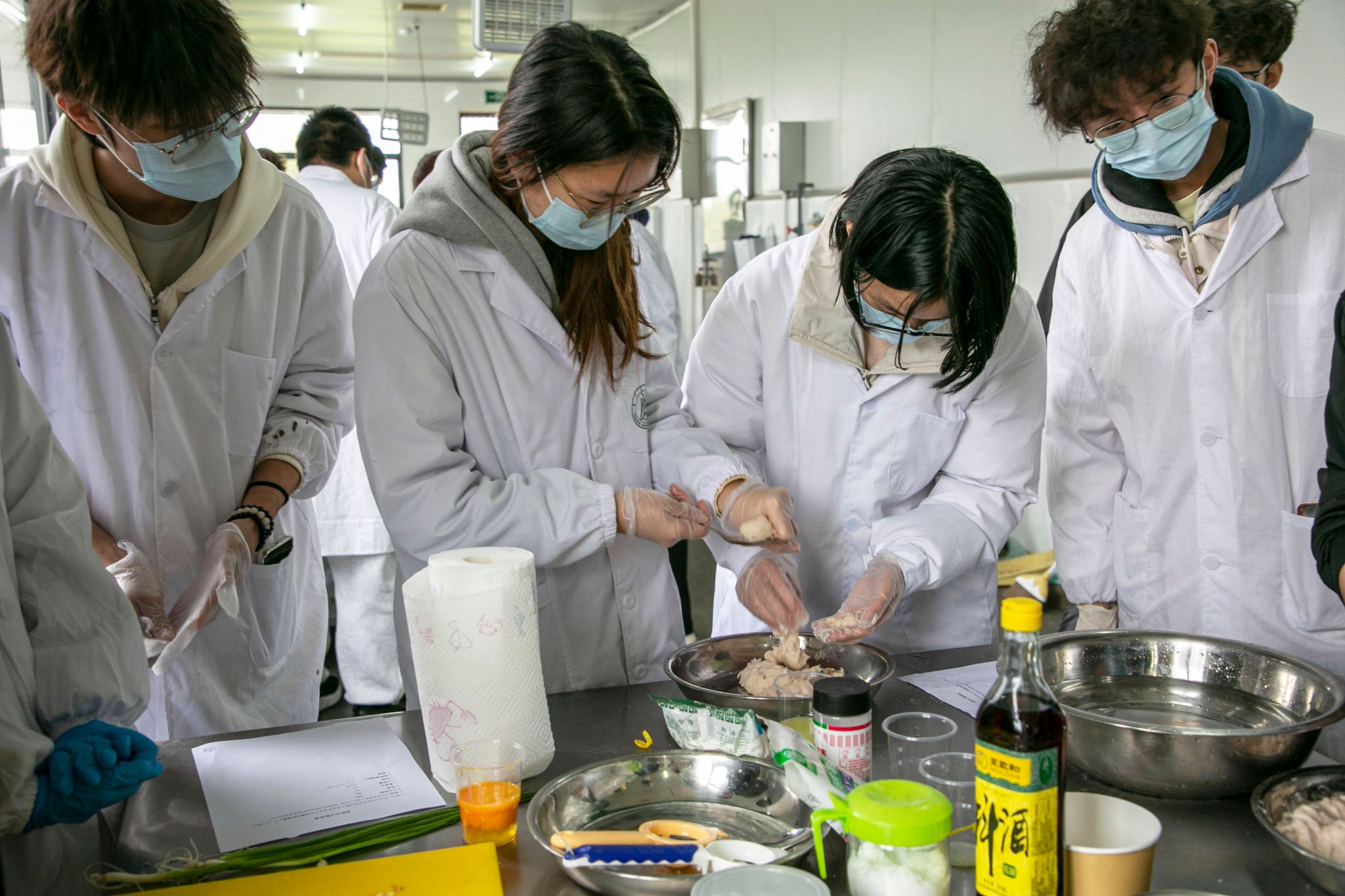 学术科技部在水产新基地加工车间举办鱼丸制作活动,鼓励同学们动手实践,在传统鱼丸制作基础上,发挥创意,尝试添加新食材、调味料,激发创新思维,丰富美食制作思路。