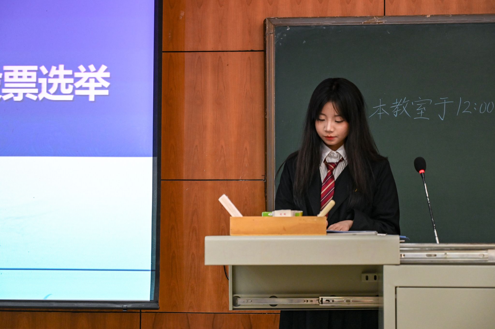 在阅读完候选人资料后,在场学生代表们投票选举a动漫