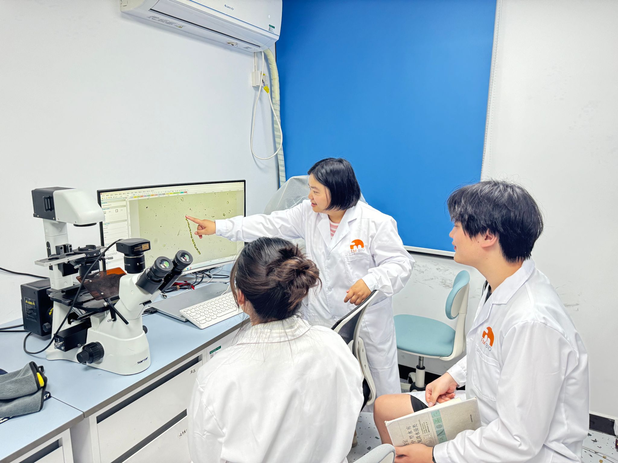 对我而言,更大的挑战还在后面。数不清的水生生物样品,近千页的专业分类参考书籍,都让我倍感枯燥。刘老师却对这些水生生物样品似乎有着非凡的热爱,她带着我一页一页地翻书,从形态特征的观察,到检索表的翻阅,再到生境的判断……为了准确鉴定某个水藻品种,她的目光在观测目镜和书页间来回穿梭,一次又一次。有了刘老师的身体力行示范和耐心陪伴指导,如今我再也不畏惧那满冰箱的水生生物样品,近千页的专业书籍《中国淡水藻类——系统、分类及生态》翻起来也像涓涓细流般顺滑。