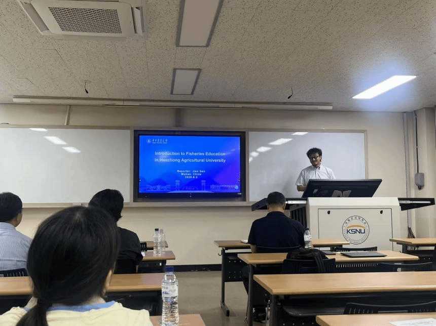 最后,访学团在教室举行了学术交流会。双方师生就各自的研究方向及水产养殖技术进行了深入的介绍和讨论,特别强调了生态保护在研究中的重要性,拓宽了学生的视野,深化了其专业认知。会上,高坚教授详细介绍了a动漫