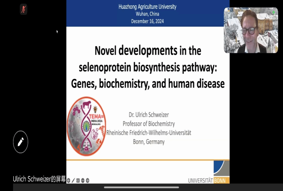 2024年第23期(总412期)“水产讲坛”在线上举行,特邀德国波恩大学的Ulrich Schweizer教授作了题为“硒蛋白生物合成途径新进展:基因、生物化学和人类疾病”的分享。本次讲座由罗智教授主持。
