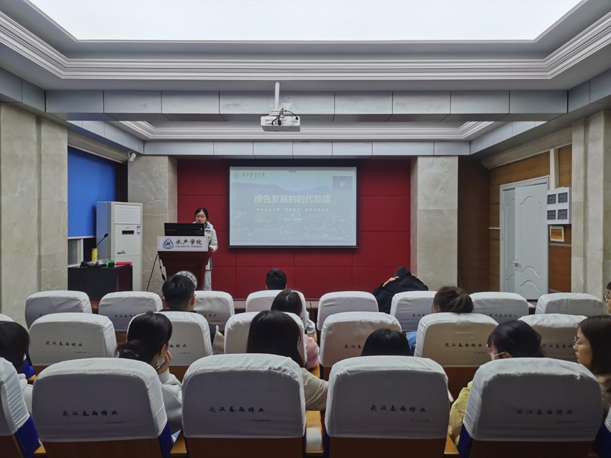 “精读精讲”研究生宣讲团的覃海瑜同学进行了题为“绿色发展的时代意蕴”的学习报告,渔业资源与环境研究生第二党支部全体党员参与此次活动。
