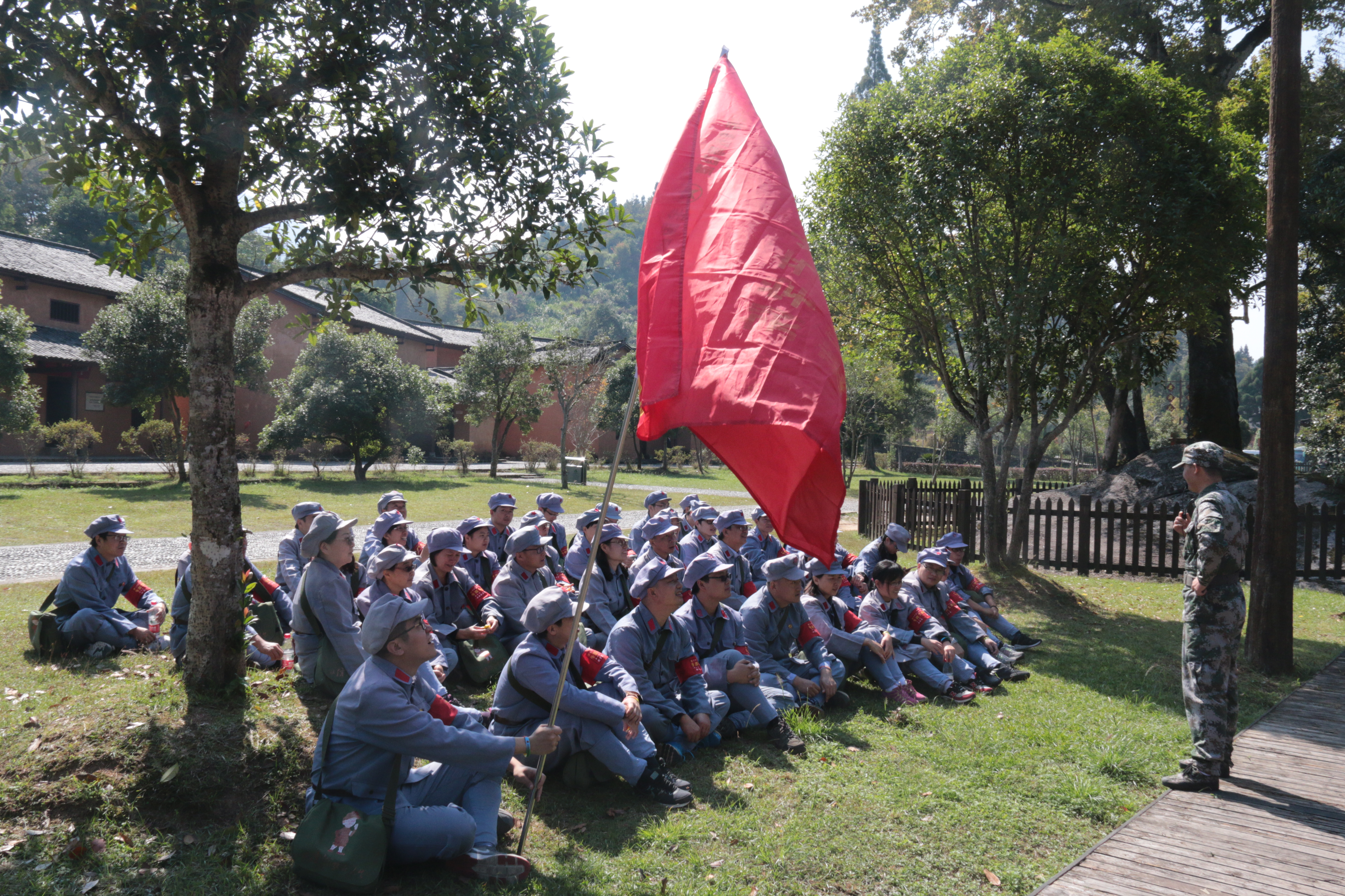 学习过程中培训班学员开展了“红军的一天”体验教学活动。首先举行的是三湾改编情景教学。三湾改编是党铸军魂的开端。授课教师系统讲解了三湾改编的历史背景、改编措施和历史意义,并将学员们分成四个班进行了情景模拟。翌日,学员们身穿红军服,背负“枪支弹药”,踏上当年红军的挑粮小道,开始了急行军。一路行军一路寻哨口,采集草药,三公里的急行军结束后学员们无不精疲力尽。午饭安排在“老表”家中,学员们以班为单位在农家生火造饭,开展了民情调查。a动漫