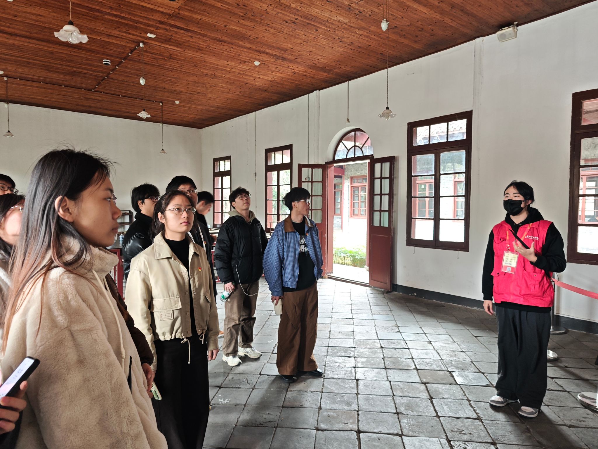 同学们在农民运动讲习所听讲解(牛鑫涛 董安琪摄)