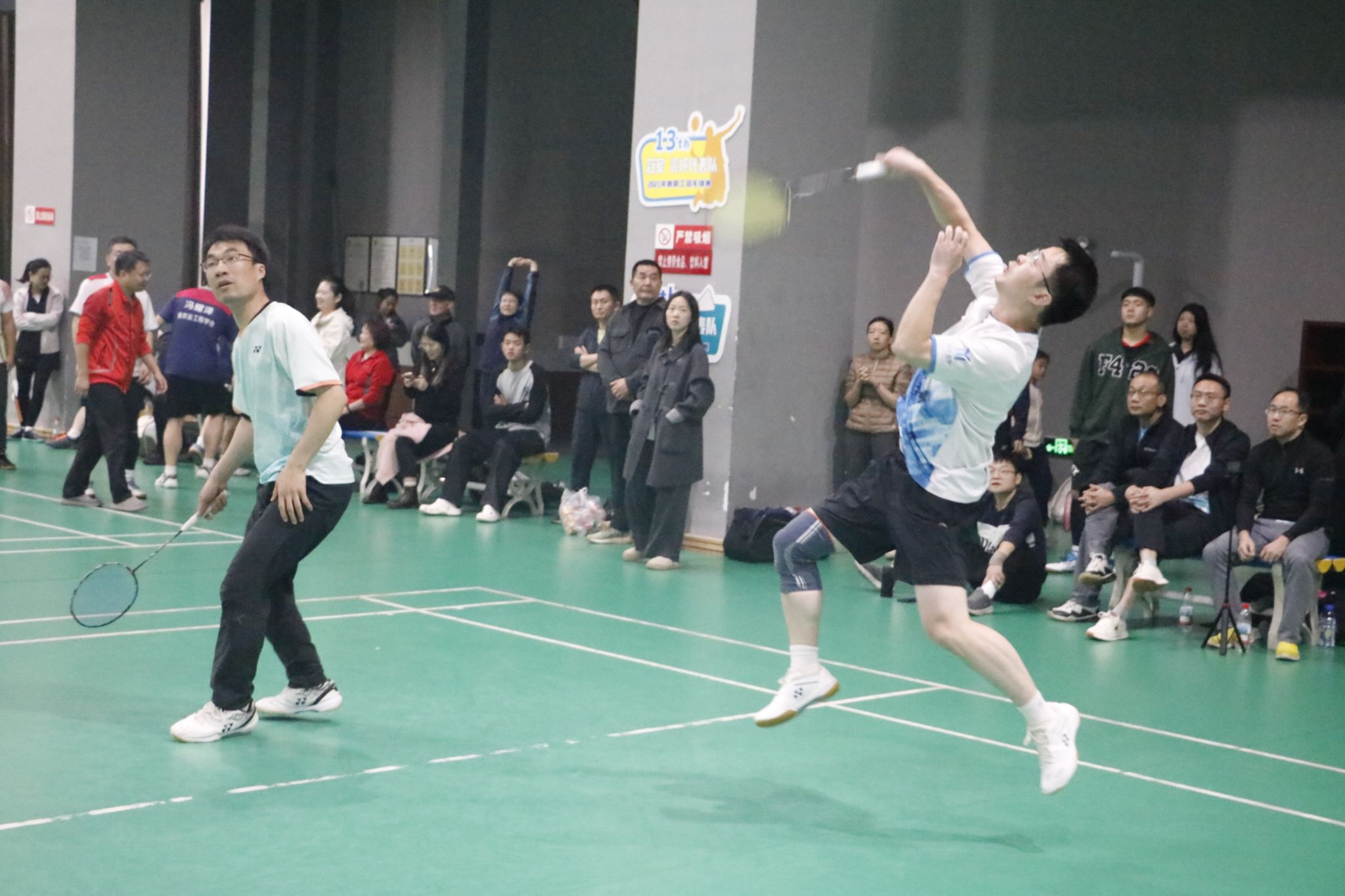 代表队与资环学院代表队展开巅峰对决。首场混双比赛,袁勇超/张楚首次组合,第一局以12:21落后,但迅速调整战术以21:19扳平,决胜局鏖战至10:9率先拿到赛点,对手间歇后积极调整,连下两分,最终a动漫