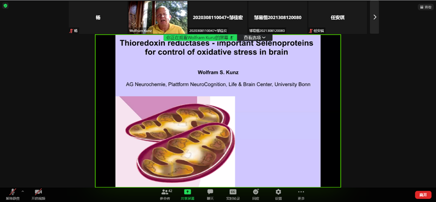 Wolfram Kunz教授首先介绍了线粒体在活性氧(ROS,Reactive oxygen species)产生和清除中的作用及其与癫痫的相关性;硒蛋白TXNRD2保护大脑中线粒体免受ROS的损害;硒蛋白TXNRD1突变与癫痫有关。