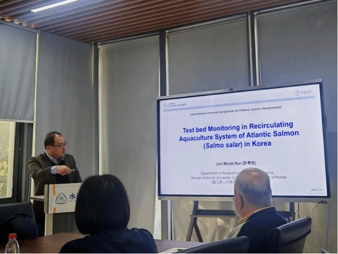 许準旭教授还分析了全球大西洋鲑病害的发生现状,评估了现有病害防控策略,并在试验系统内开展病害监测,以解析实际循环水养殖操作中的病原菌风险。相关研究预期将为构建稳定的大西洋鲑养殖基础设施做出重要贡献,为韩国制定标准化的循环水养殖技术规程提供关键参考数据,最终助力韩国本土鲑鱼产业提升产能、降低生产成本。