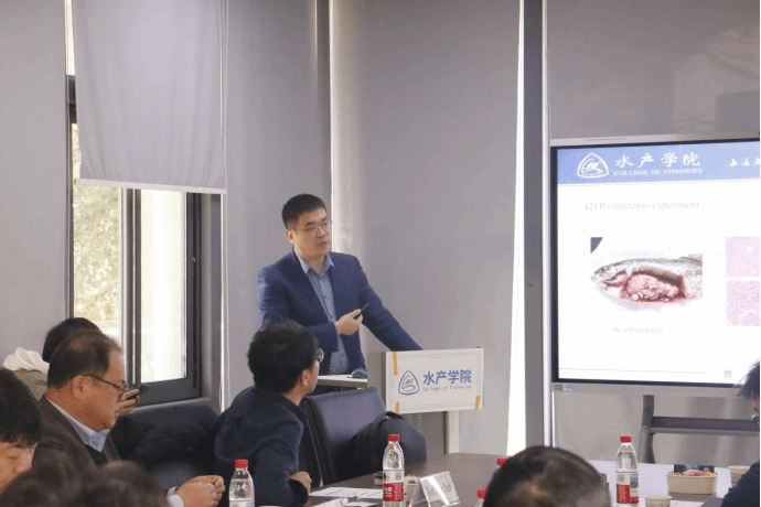 王庆超副教授的报告主题为“大口黑鲈中诺卡氏菌病的发病机制及疫苗防控策略”。大口黑鲈是我国高经济价值淡水养殖品种,2024 年产量已超80万吨,而诺卡氏菌病是制约其产业健康发展的主要病害之一,其研究团队聚焦该病原菌开展系统研究。