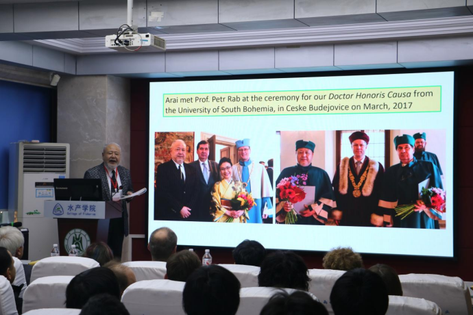 Katsutoshi ARAI教授致开幕词,向参会学者表示欢迎。他介绍了本次研讨会旨在搭建欧亚学术交流桥梁、推动泥鳅研究与产业融合的核心目标。他提到:“近20年全基因组测序等新技术让泥鳅研究取得了突破性进展,但欧亚学者间的协作仍有不足,希望本次会议能成为整合基础研究与产业应用的纽带。”