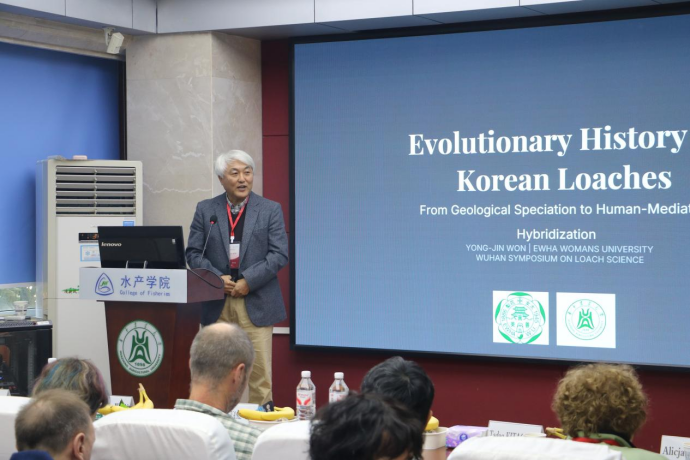 韩国梨花女子大学的Yong-Jin WON教授作了题为“韩国泥鳅的演化历史:从地质与古水文驱动的物种形成到人为介导的杂交”的报告。Yong-Jin WON教授解析了地理因素对物种分化的作用。介绍了韩国三面环海且有山脉阻隔,地理隔离显著影响了淡水鱼类演化,长白山天池至太白山一线形成了南北地理边界,导致鱼类物种呈现明显的区域分布差异,目前共识别出16个鱼类物种。他表示冰川期海平面周期性变化改变了韩国、中国、日本间的海岸线及古河流格局,形成了陆桥与古河流,促进了物种扩散与二次接触,比如C. nalbanti就存在从南方向北方的扩张模式,Tamjin河种群还与日本九州鳅属物种存在跨海峡基因渐渗,证实了历史上的河流连通性。