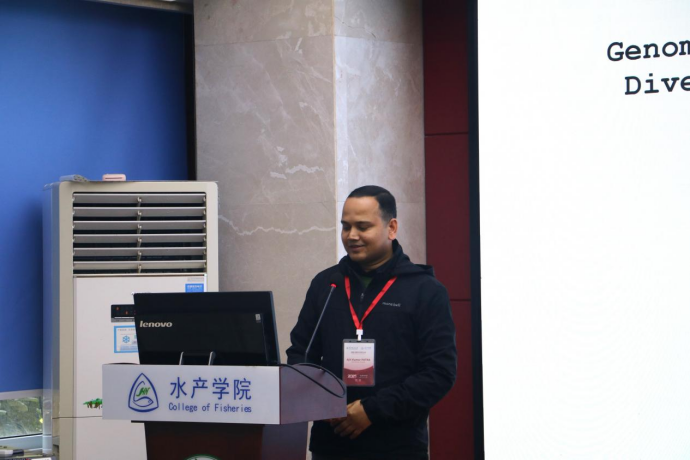 韩国梨花女子大学Ajit Kumar PATRA研究员作了题为“泥鳅属物种结构与演化分化的基因组洞察” 的报告。他展示了基因组分析的成果。通过种群基因组分析,发现Iksokemia属姐妹物种的形态分化有限,Seomjin河与Yeongsan河种群的遗传聚类相近,而Tamjin河及附近岛屿种群形成了独特的遗传群。完成了C. hankugensis的基因组测序,揭示其扩张的基因家族涉及核小体组装、脂质代谢等功能,这些结果为物种划分提供了新的分子证据。