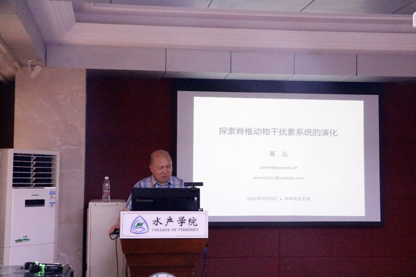 水产讲坛,并做了题为“探索脊椎动物干扰素系统的演化”的学术报告,受到师生的热烈欢迎。